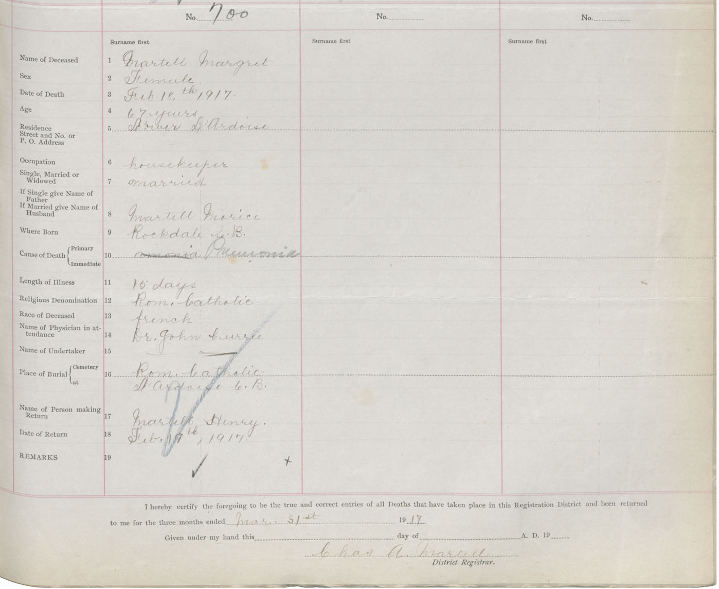 Female Death Registration: Year: 1917 book: 47 page: 321 number: 700
