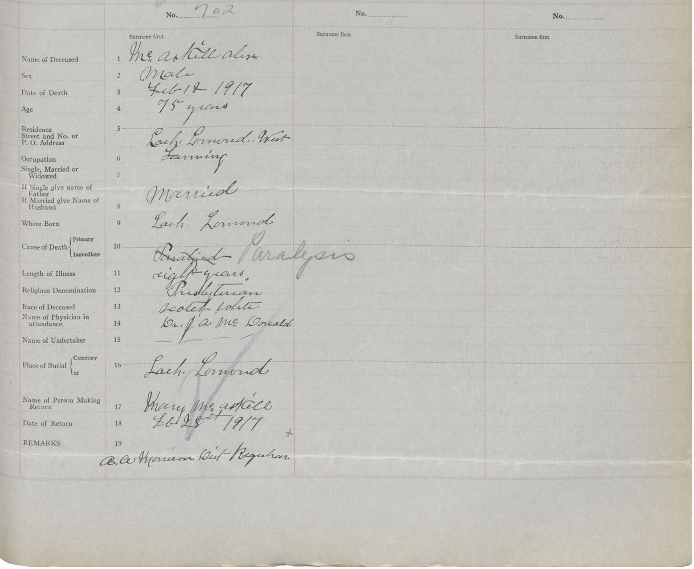 Male Death Registration: Year: 1917 book: 47 page: 323 number: 702