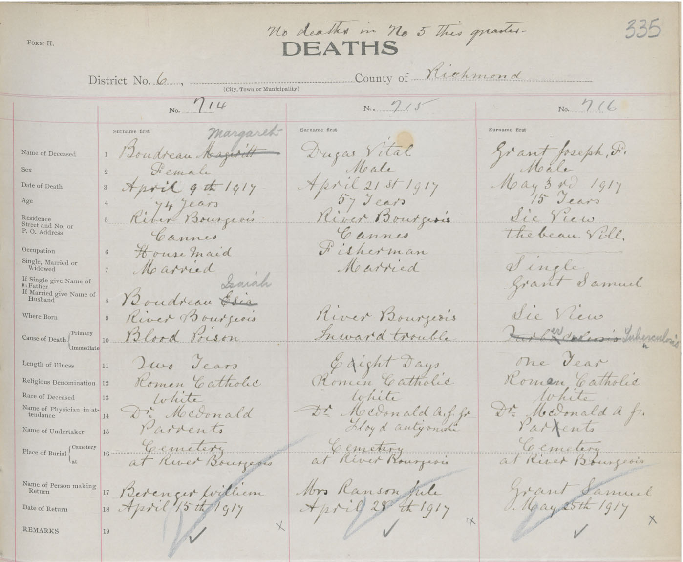 Female Death Registration: Year: 1917 book: 47 page: 335 number: 714