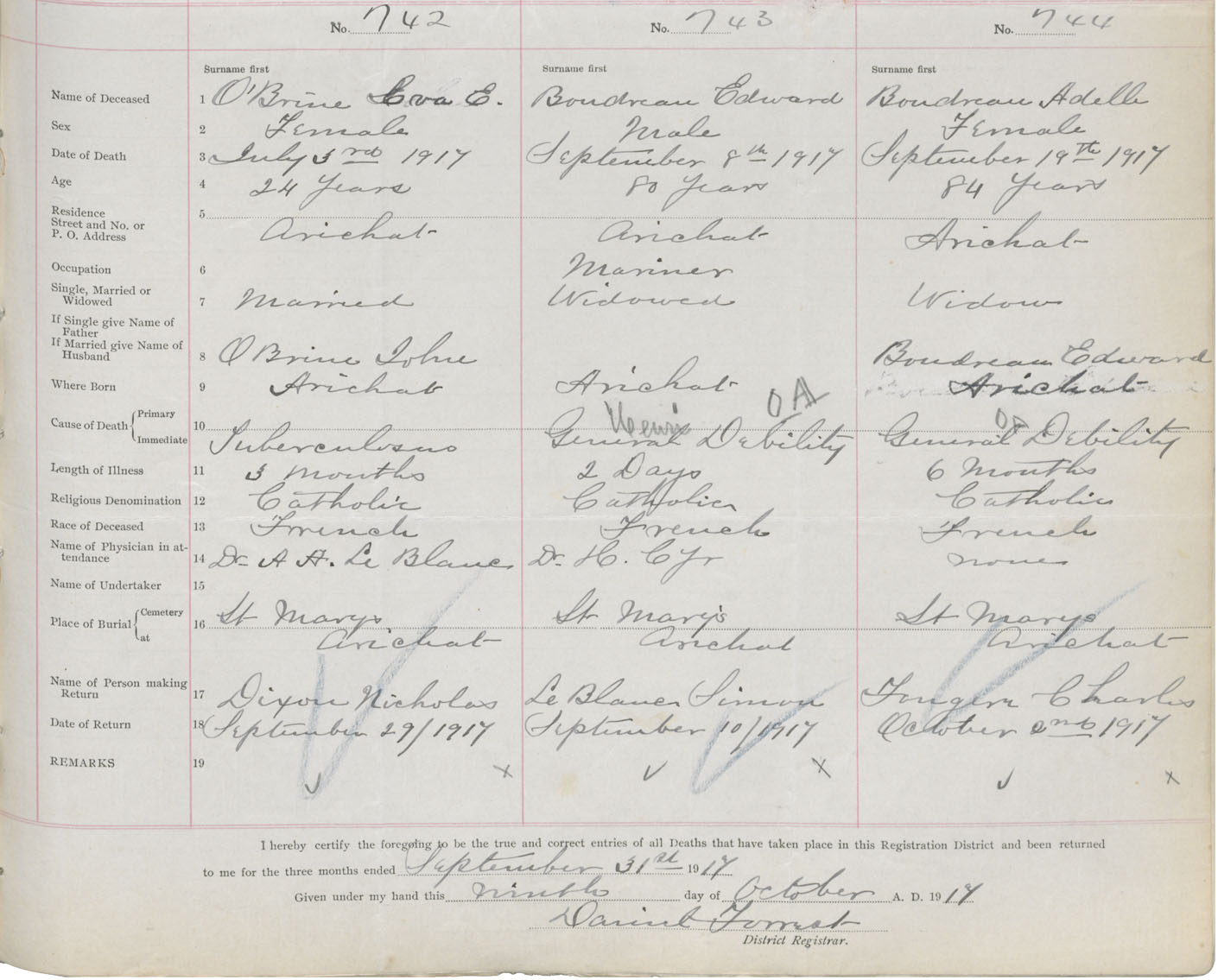 Female Death Registration: Year: 1917 book: 47 page: 347 number: 742