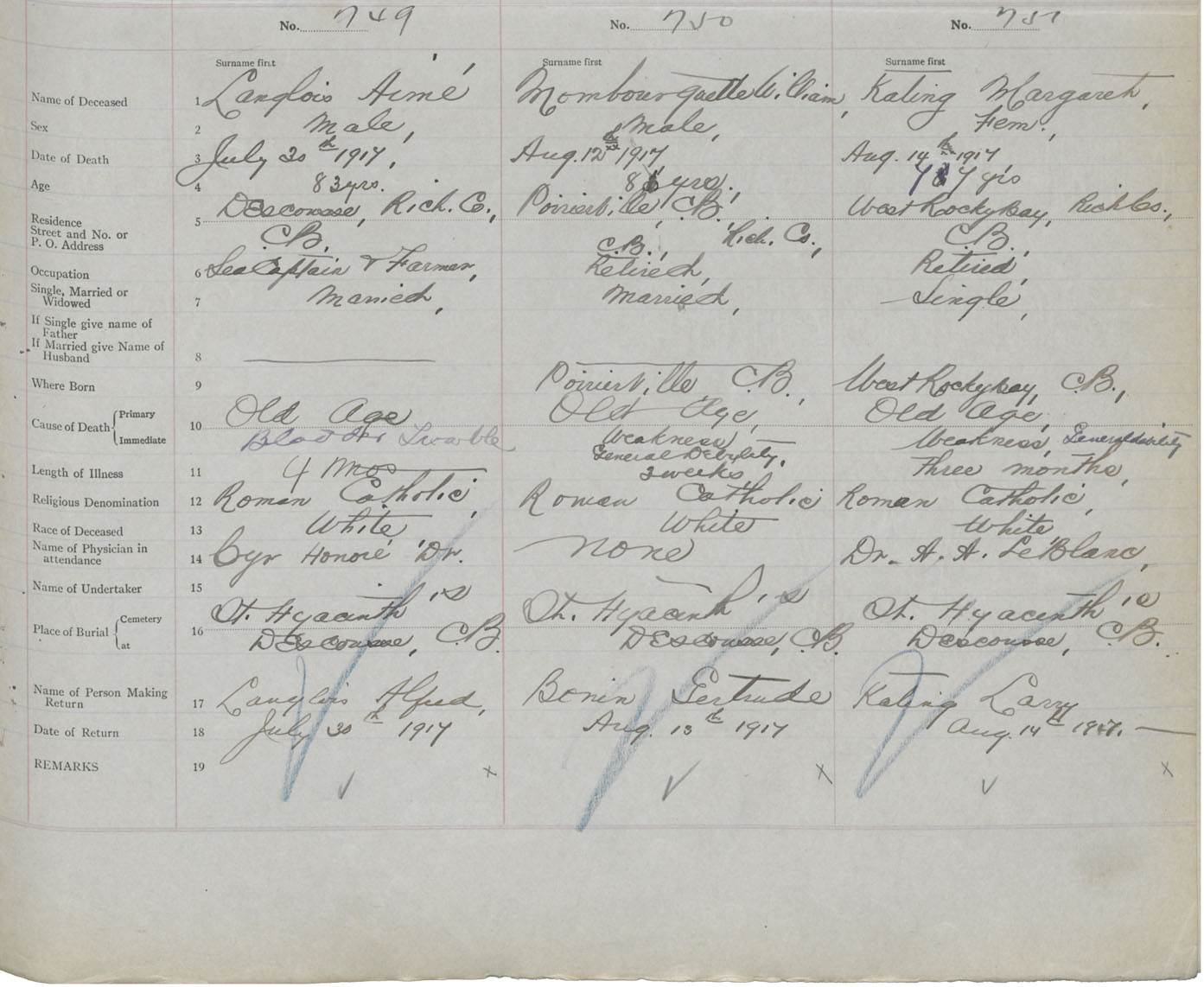 Male Death Registration: Year: 1917 book: 47 page: 351 number: 749