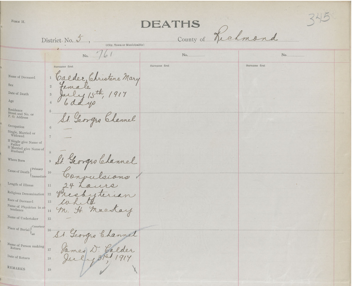 Female Death Registration: Year: 1917 book: 47 page: 355 number: 761