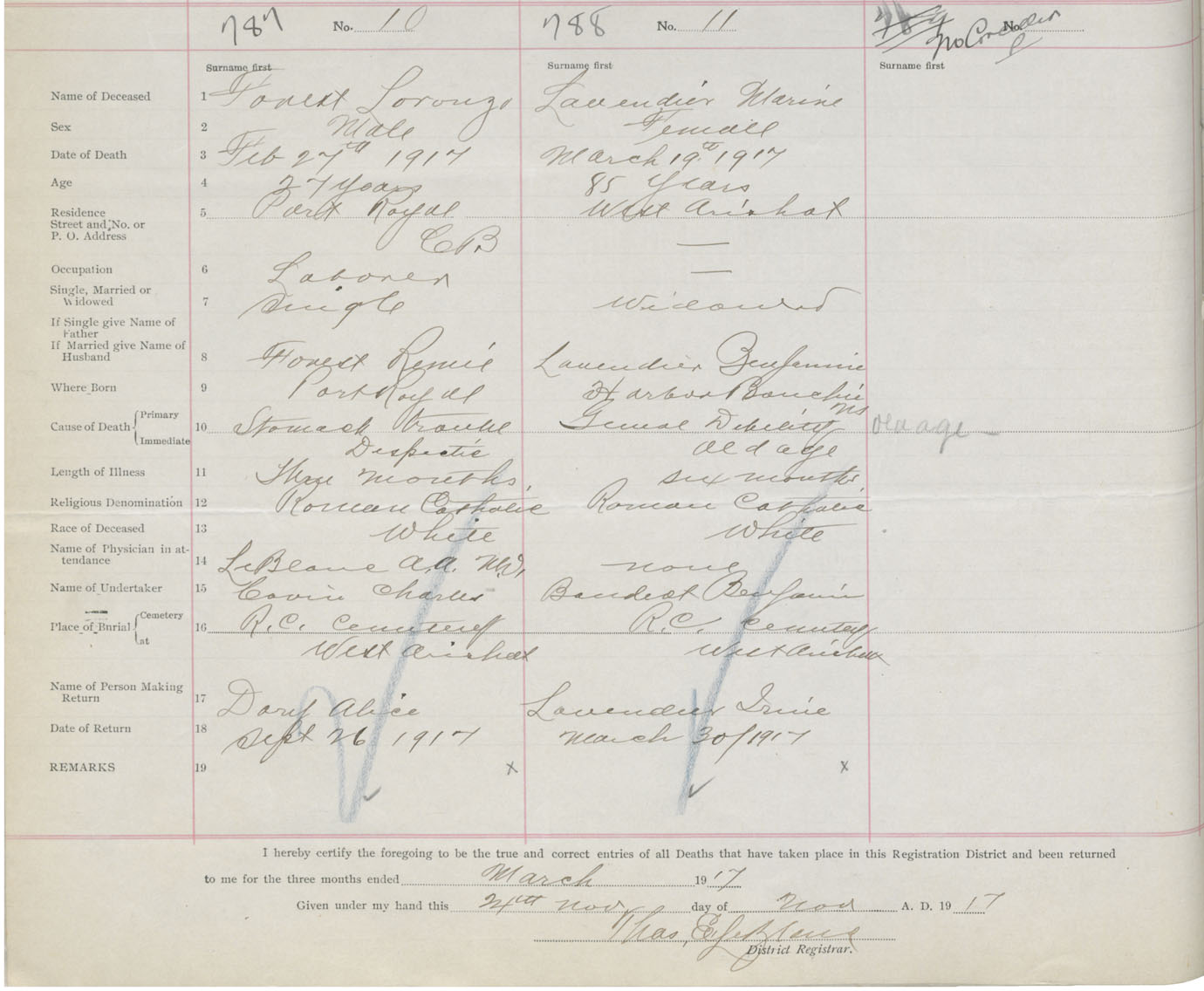 Female Death Registration: Year: 1917 book: 47 page: 368 number: 788