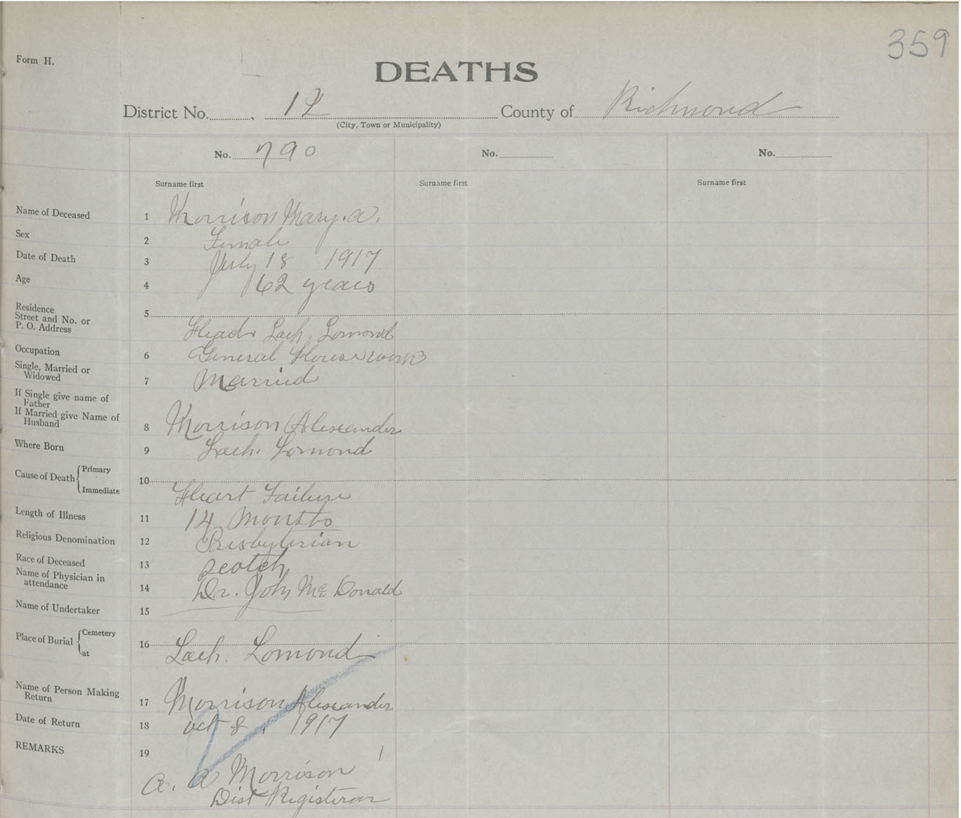 Female Death Registration: Year: 1917 book: 47 page: 369 number: 790