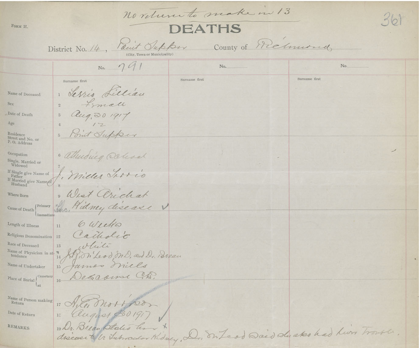 Female Death Registration: Year: 1917 book: 47 page: 371 number: 791