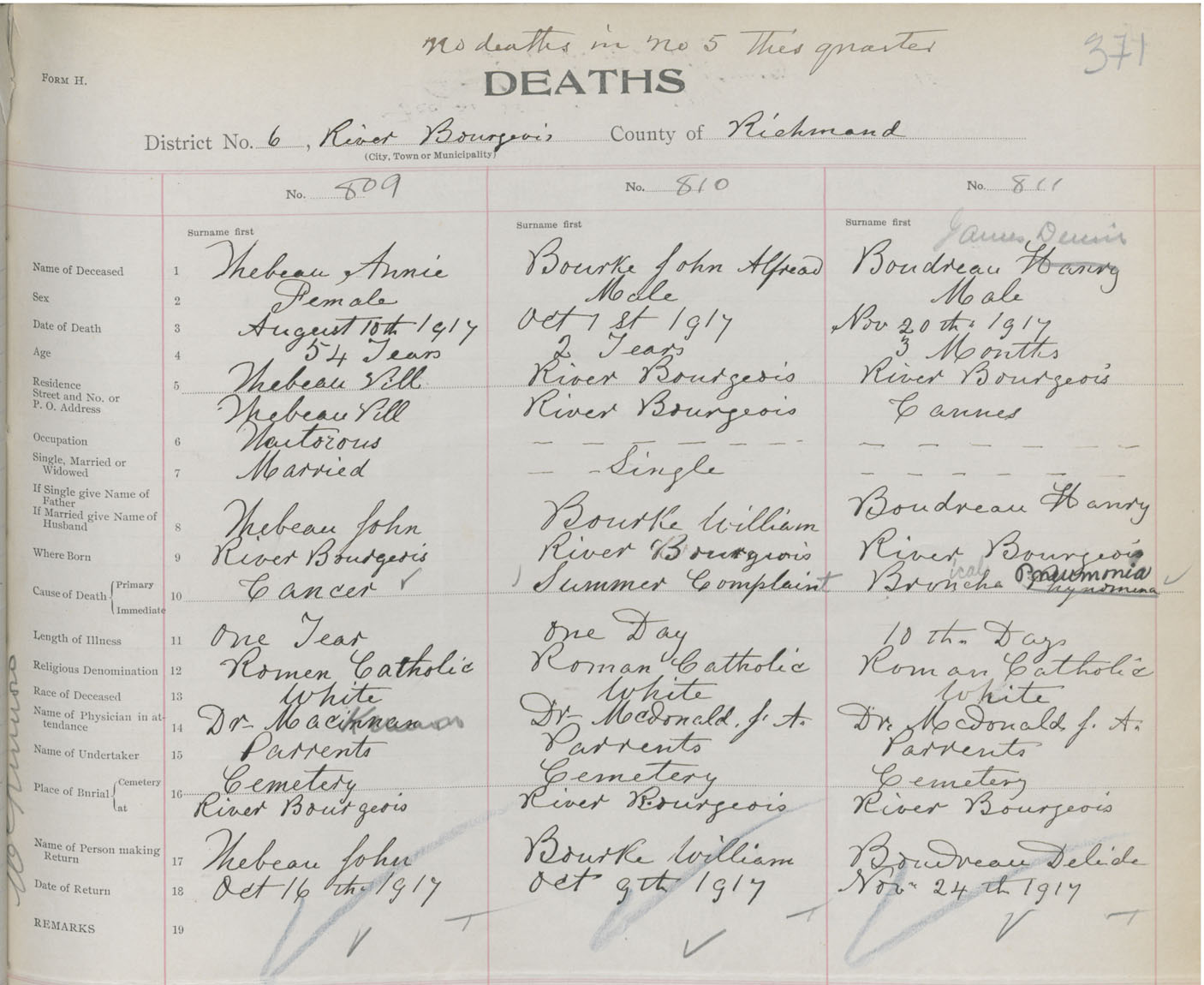 Male Death Registration: Year: 1917 book: 47 page: 381 number: 811