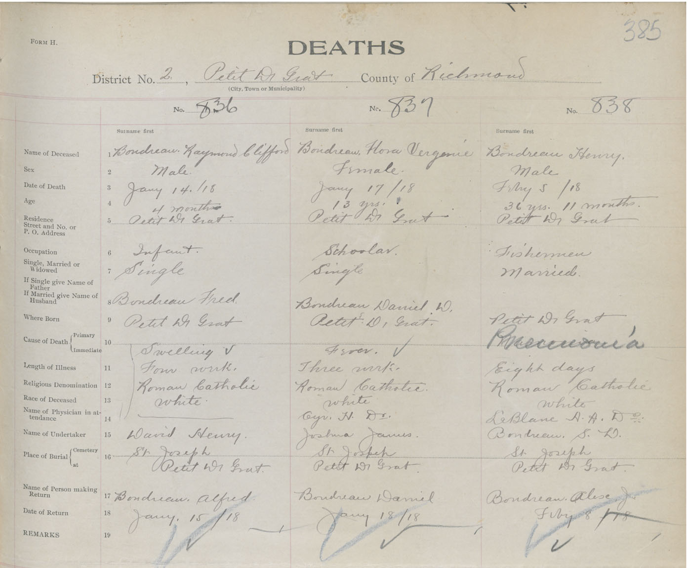 Male Death Registration: Year: 1918 book: 47 page: 395 number: 838