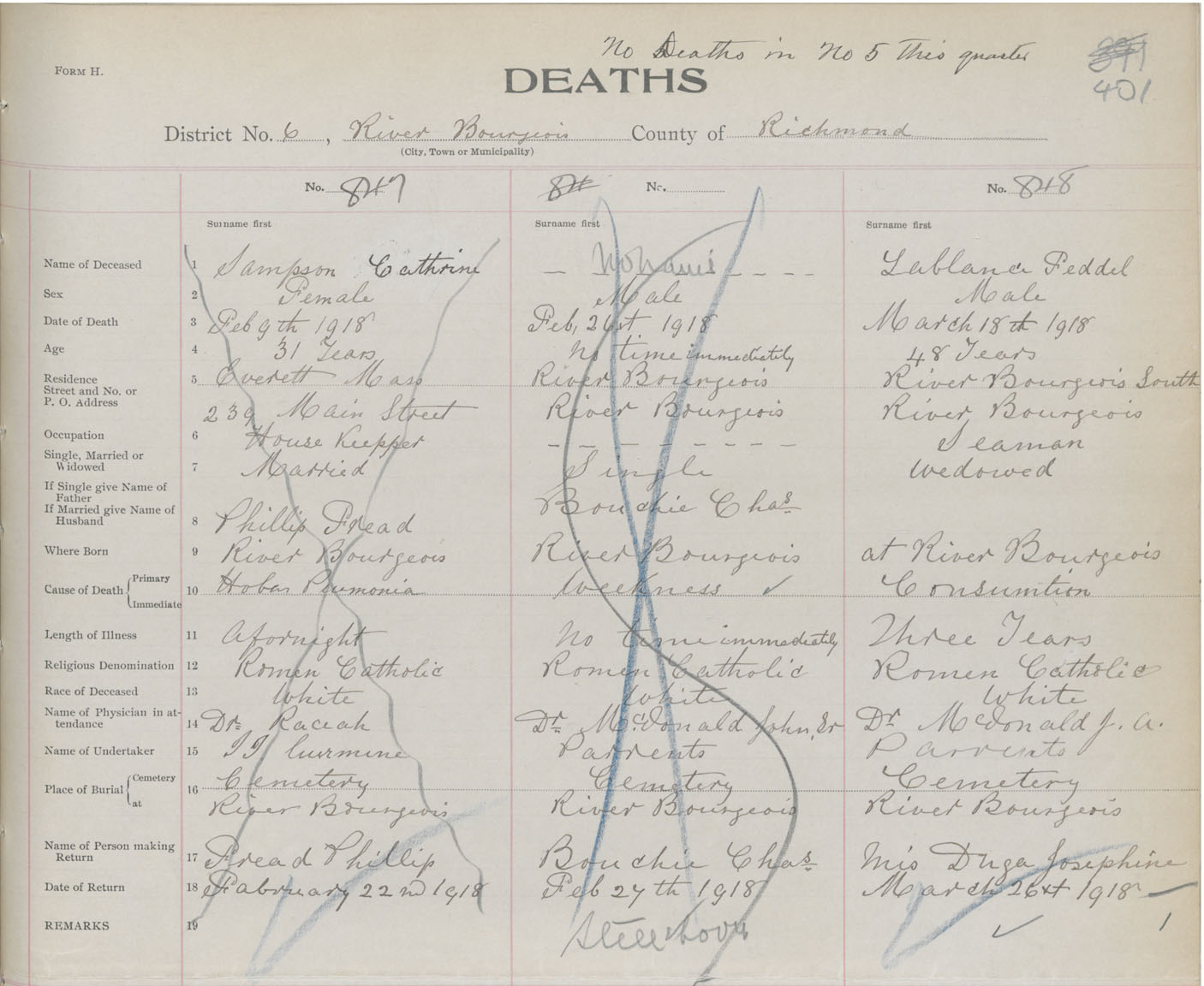 Male Death Registration: Year: 1918 book: 47 page: 401 number: 848