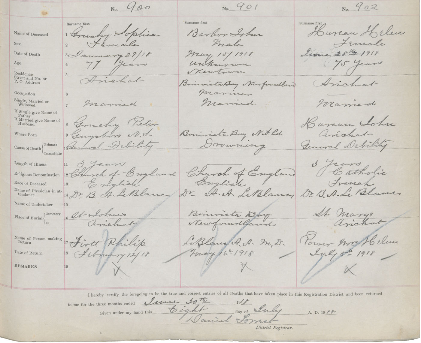 Female Death Registration: Year: 1918 book: 47 page: 419 number: 902