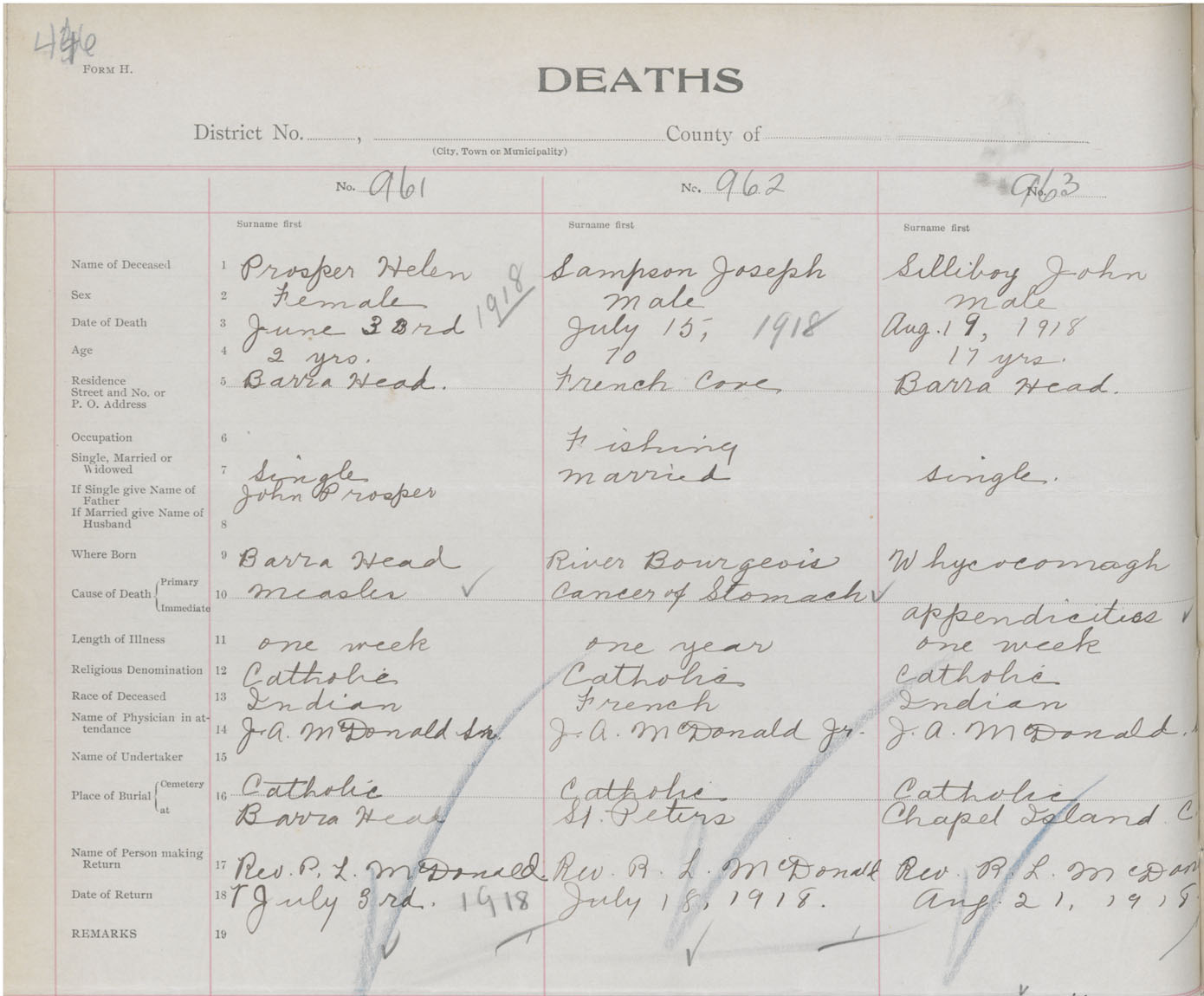 Male Death Registration: Year: 1918 book: 47 page: 446 number: 963