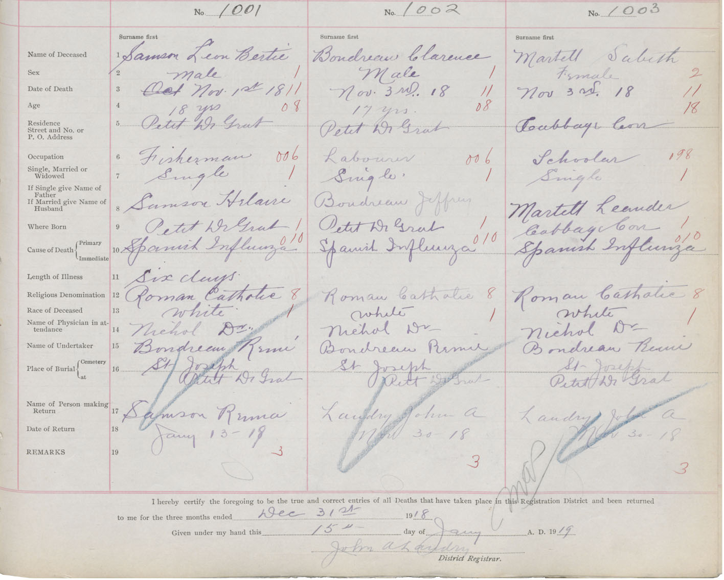 Female Death Registration: Year: 1918 book: 47 page: 463 number: 1003