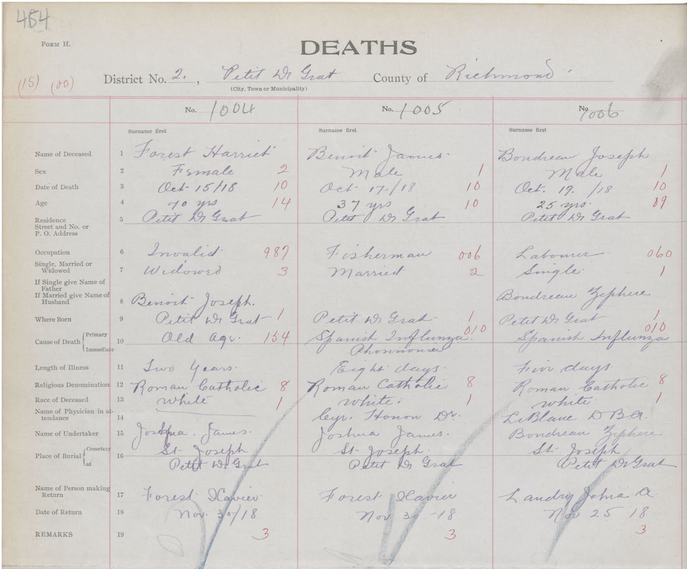 Male Death Registration: Year: 1918 book: 47 page: 464 number: 1006