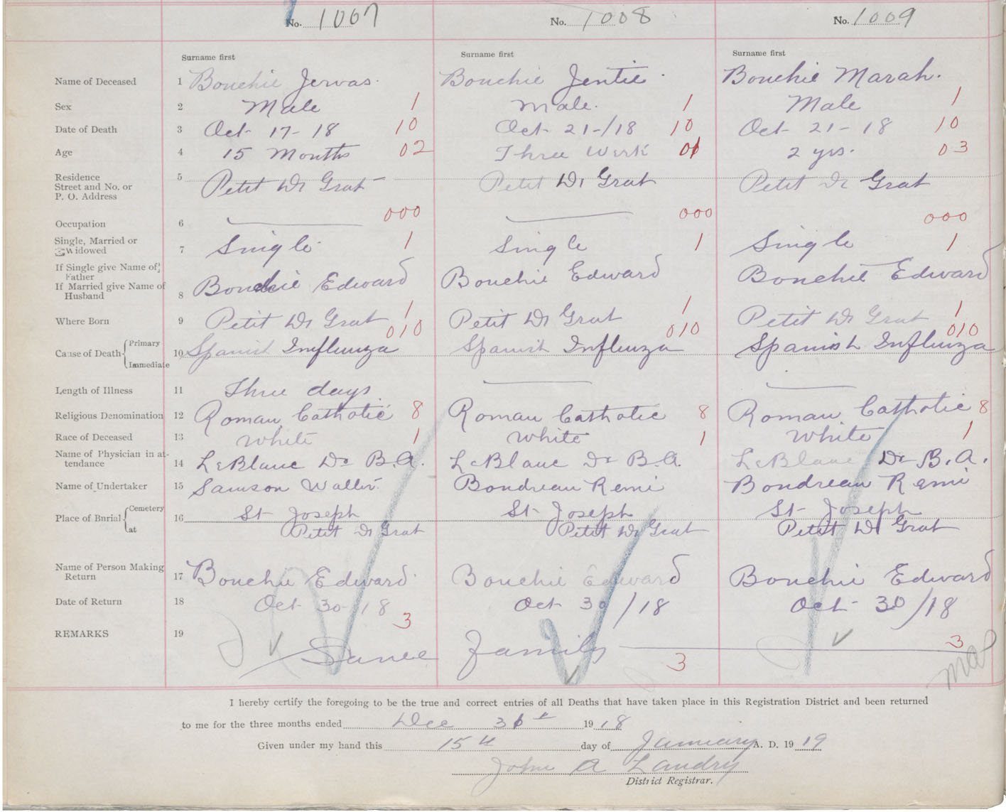 Male Death Registration: Year: 1918 book: 47 page: 464 number: 1009