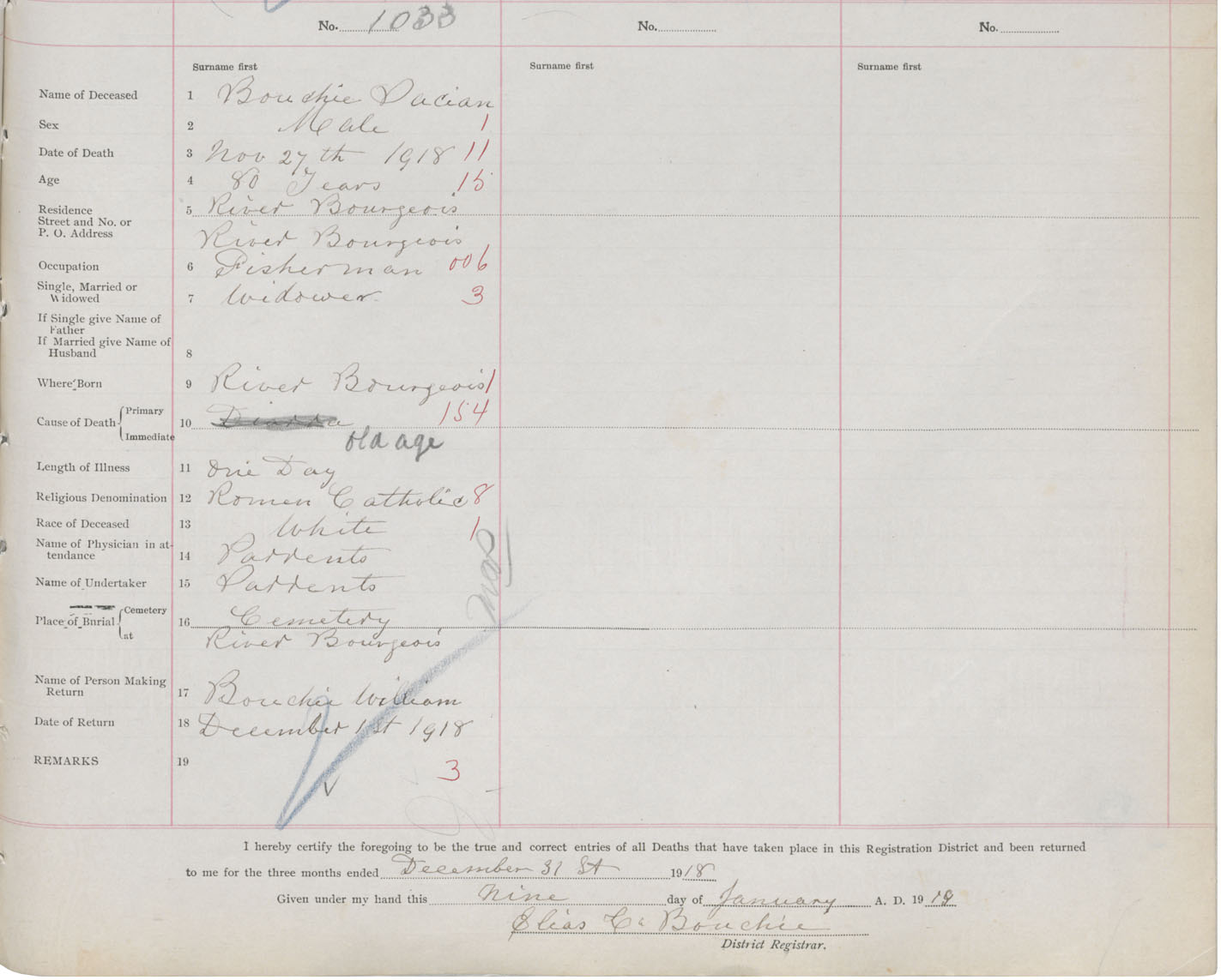 Male Death Registration: Year: 1918 book: 47 page: 475 number: 1033