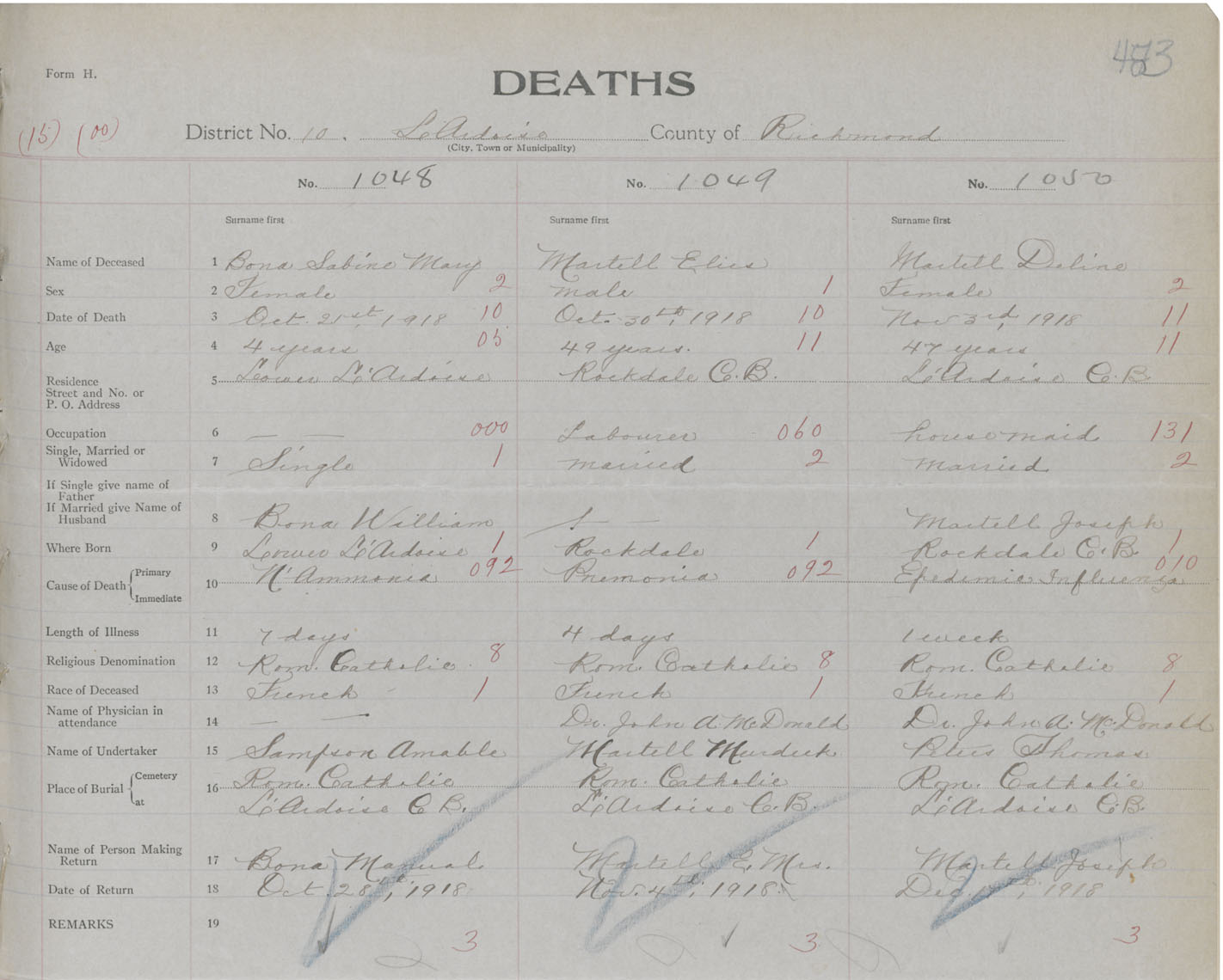 Female Death Registration: Year: 1918 book: 47 page: 483 number: 1048