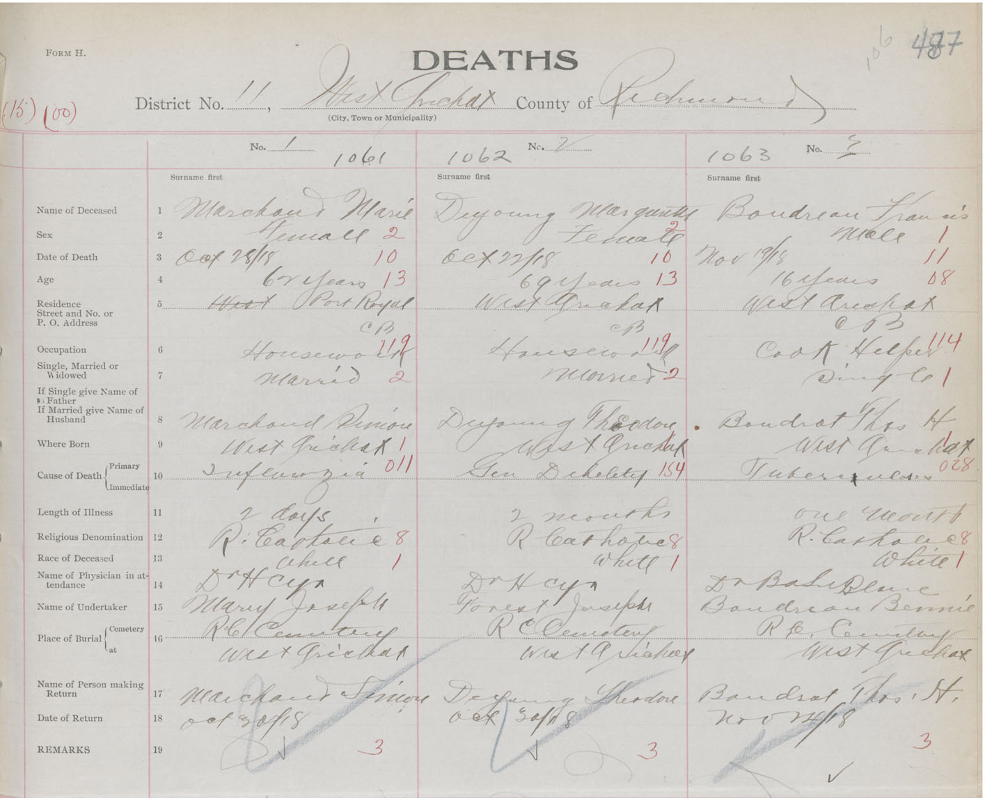 Female Death Registration: Year: 1918 book: 47 page: 487 number: 1061