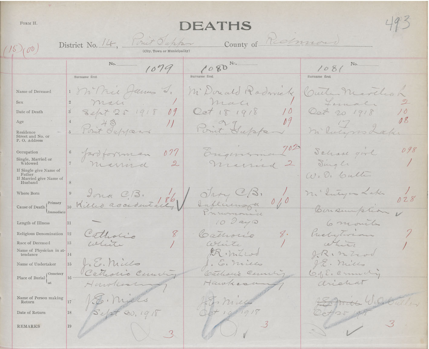 Male Death Registration: Year: 1918 book: 47 page: 493 number: 1079