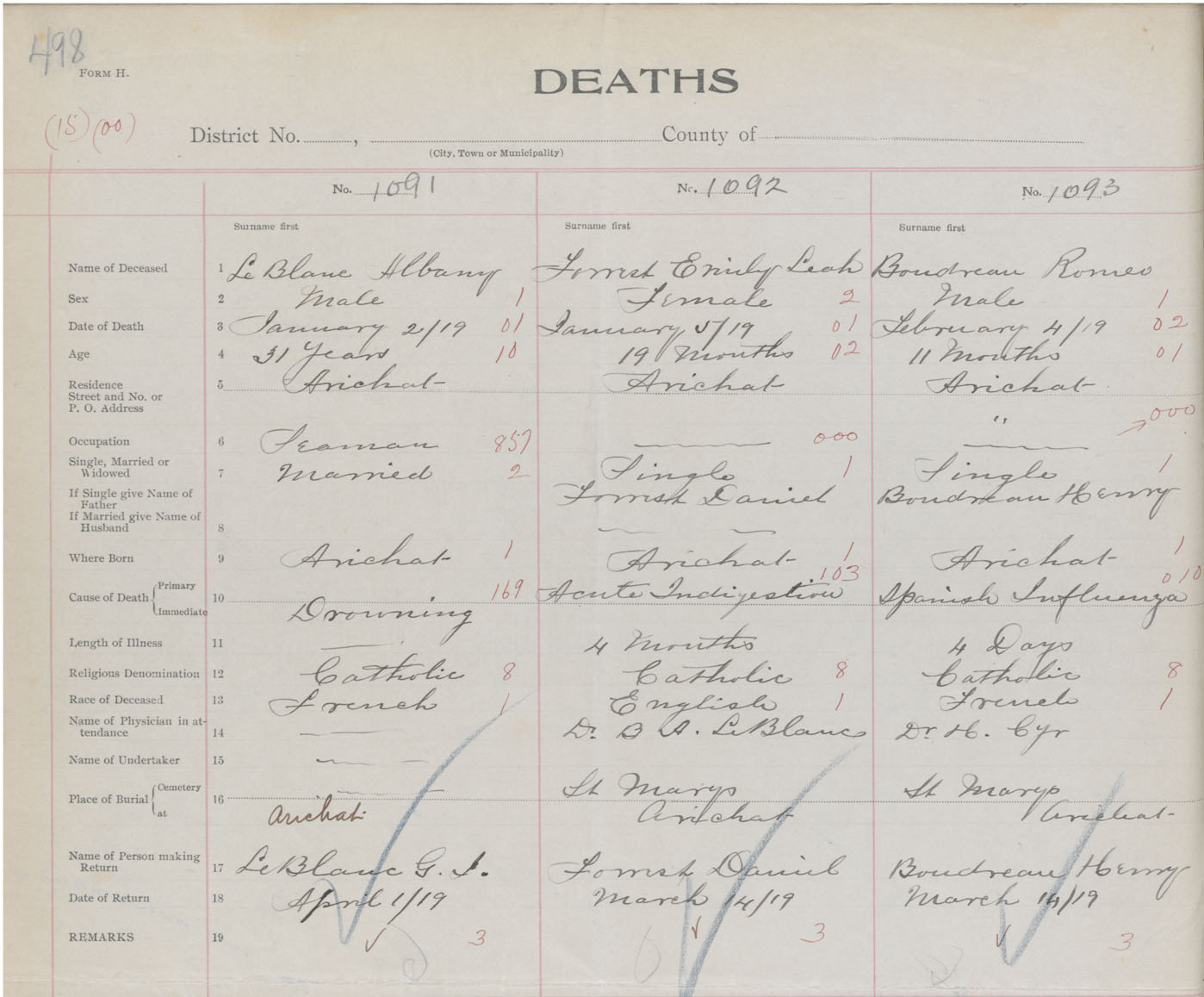 Male Death Registration: Year: 1919 book: 47 page: 498 number: 1091