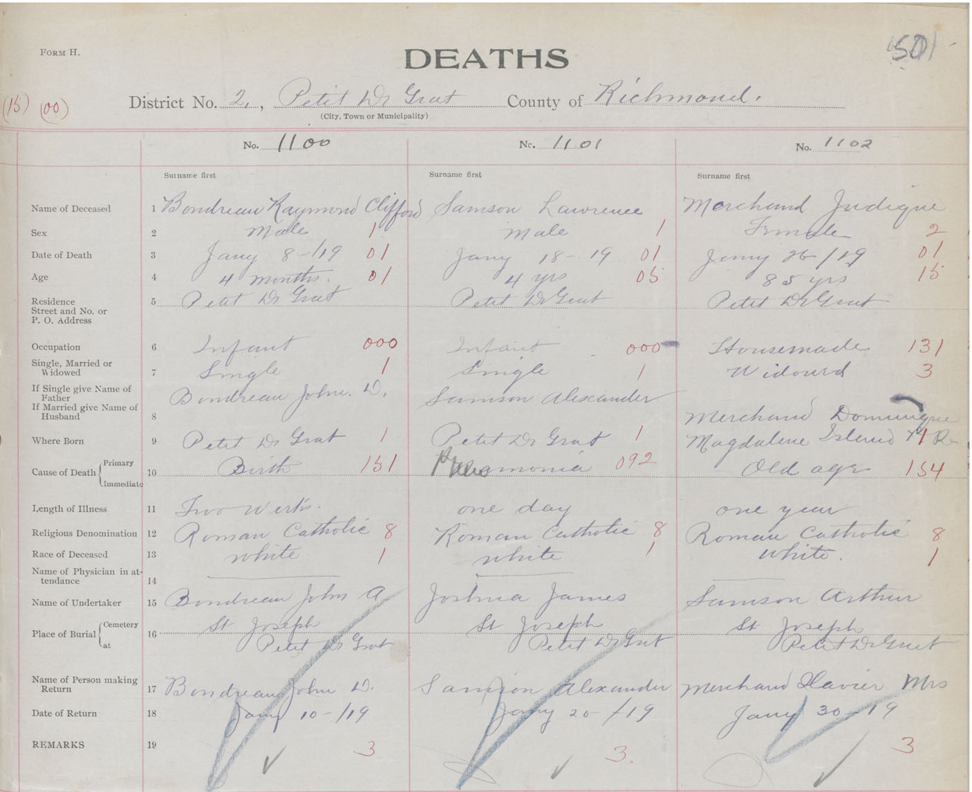 Male Death Registration: Year: 1919 book: 47 page: 501 number: 1100
