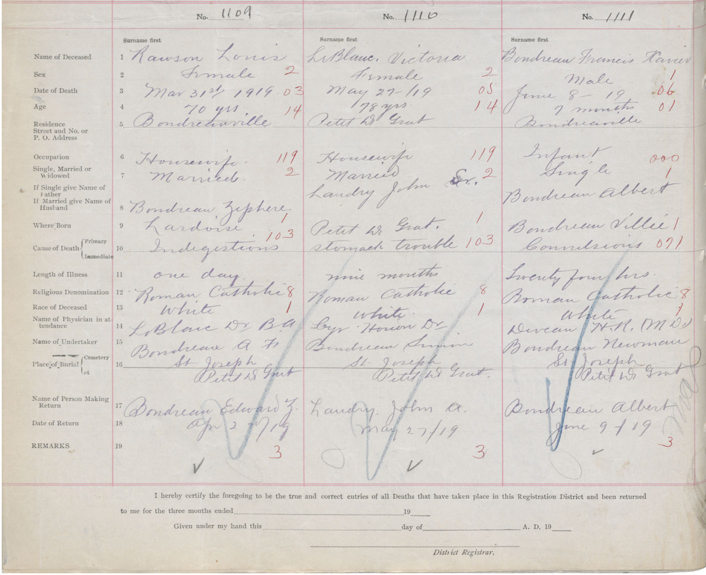 Female Death Registration: Year: 1919 book: 47 page: 502 number: 1109