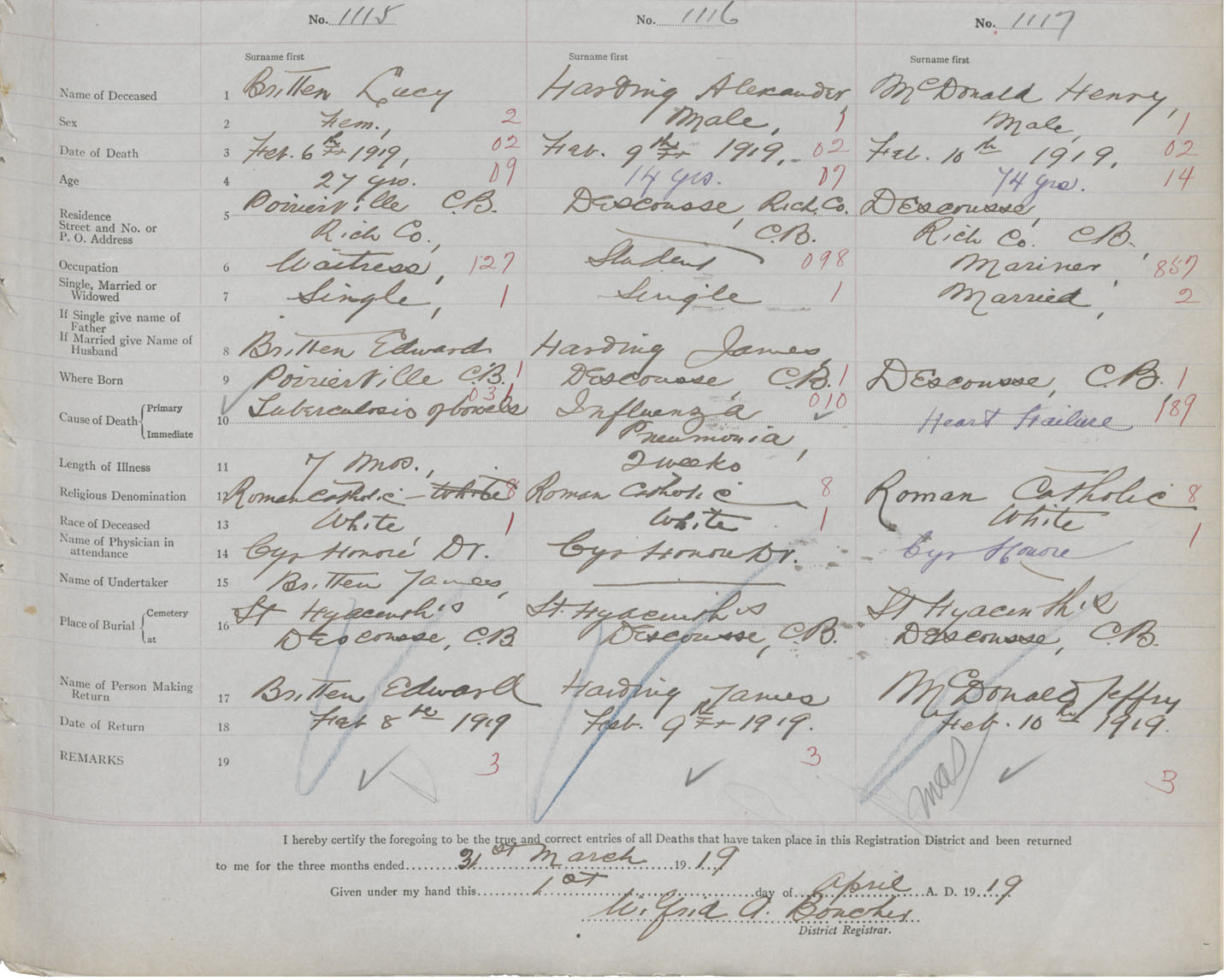 Female Death Registration: Year: 1919 book: 47 page: 503 number: 1115