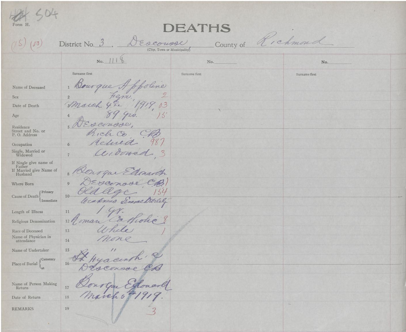 Female Death Registration: Year: 1919 book: 47 page: 504 number: 1118