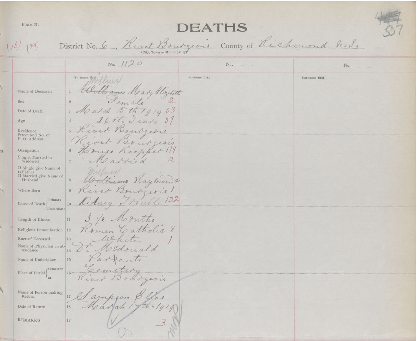 Female Death Registration: Year: 1919 book: 47 page: 507 number: 1120