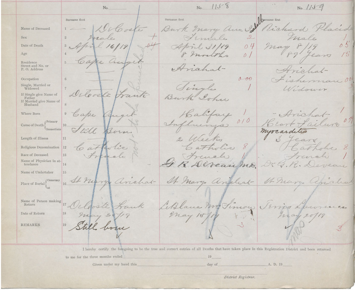 Male Death Registration: Year: 1919 book: 47 page: 522 number: 1159