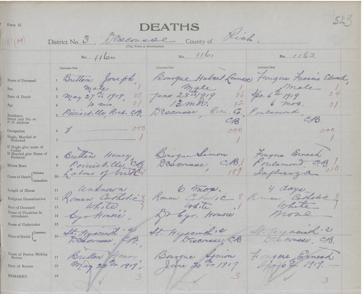 Male Death Registration: Year: 1919 book: 47 page: 523 number: 1162