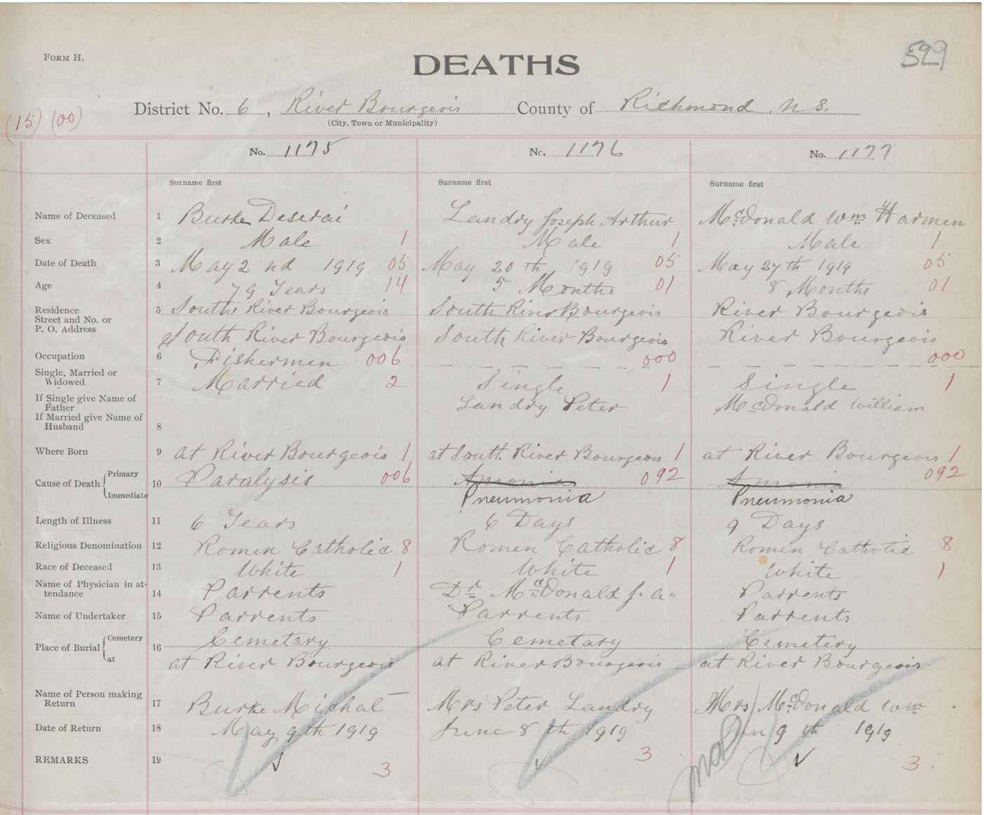 Male Death Registration: Year: 1918 book: 47 page: 529 number: 1177