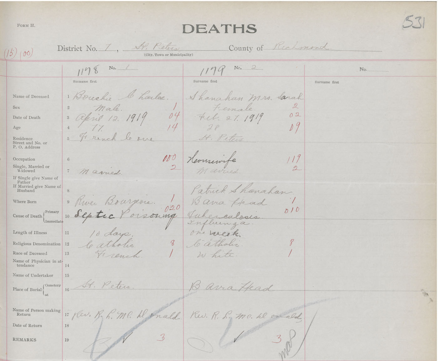 Female Death Registration: Year: 1919 book: 47 page: 531 number: 1179