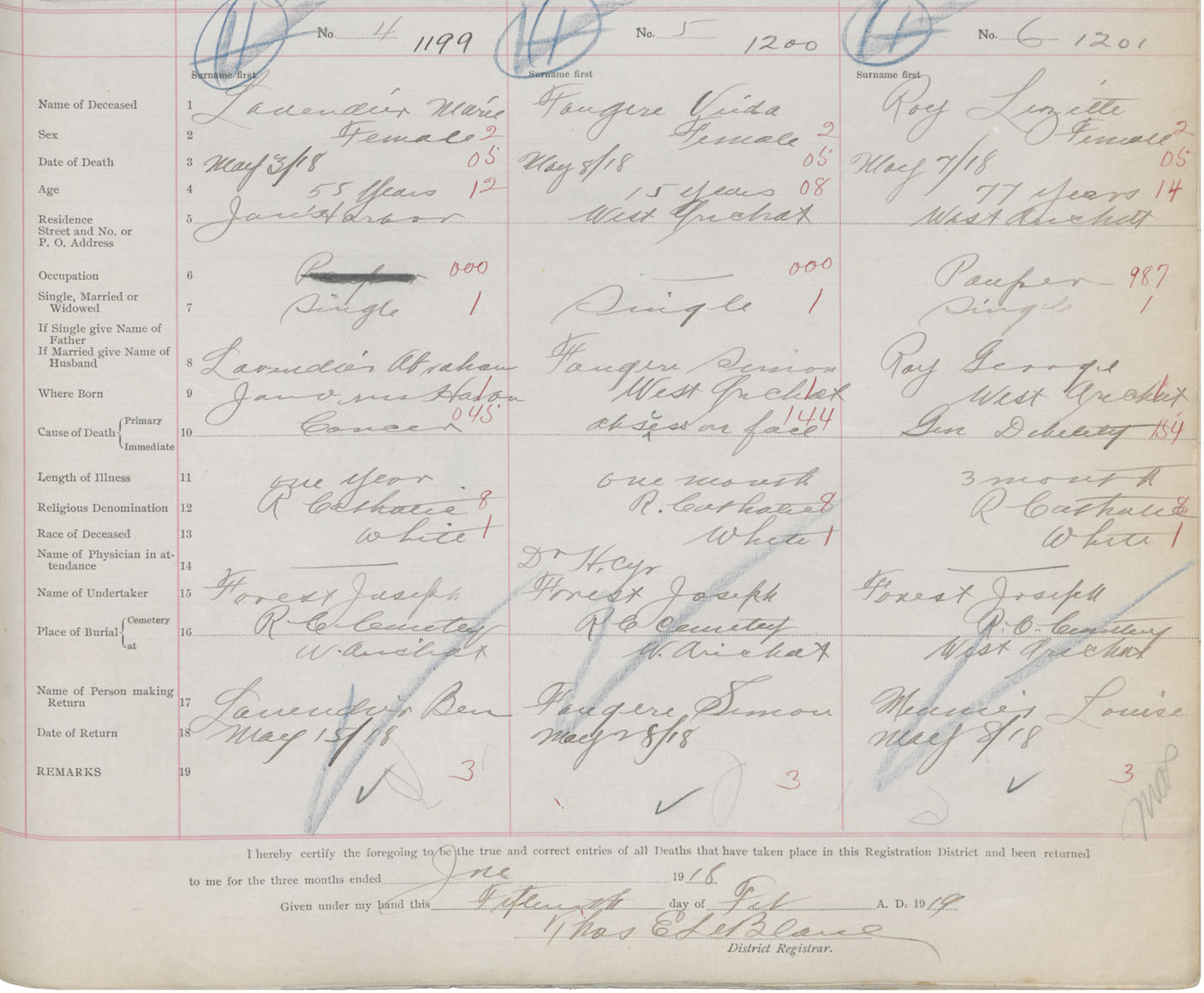 Female Death Registration: Year: 1918 book: 47 page: 541 number: 1201