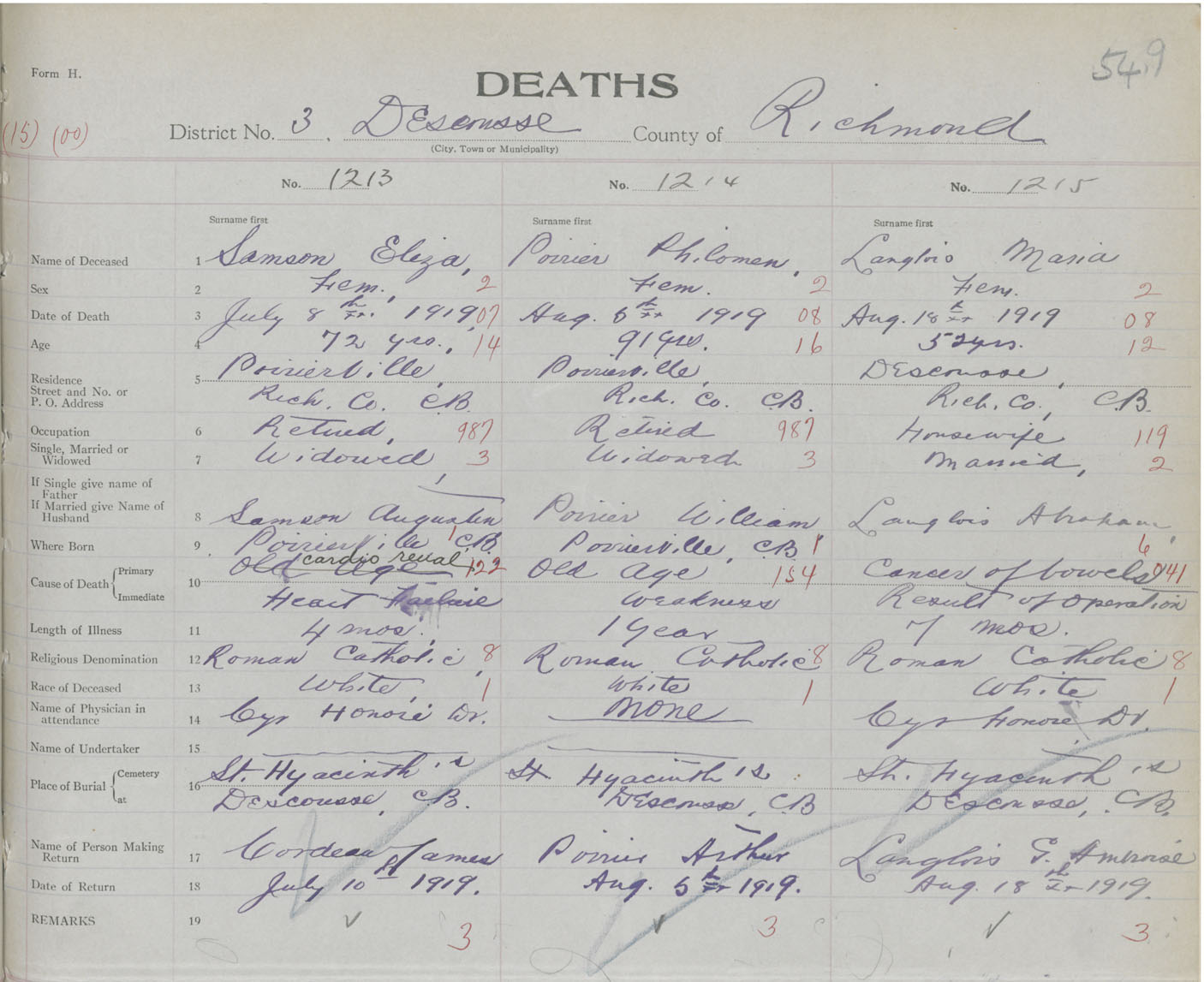 Female Death Registration: Year: 1919 book: 47 page: 549 number: 1215