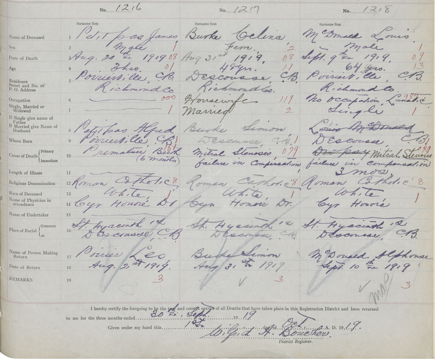 Male Death Registration: Year: 1918 book: 47 page: 549 number: 1218