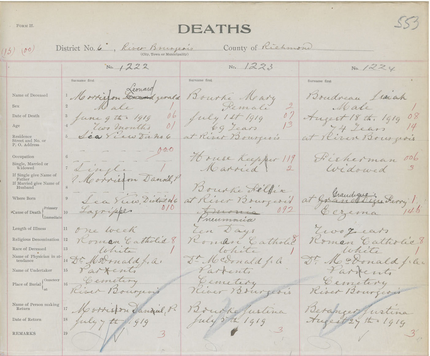 Male Death Registration: Year: 1919 book: 47 page: 553 number: 1224
