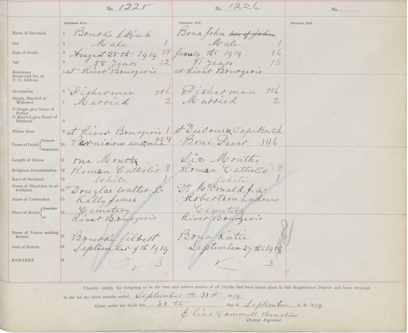 Male Death Registration: Year: 1919 book: 47 page: 553 number: 1226