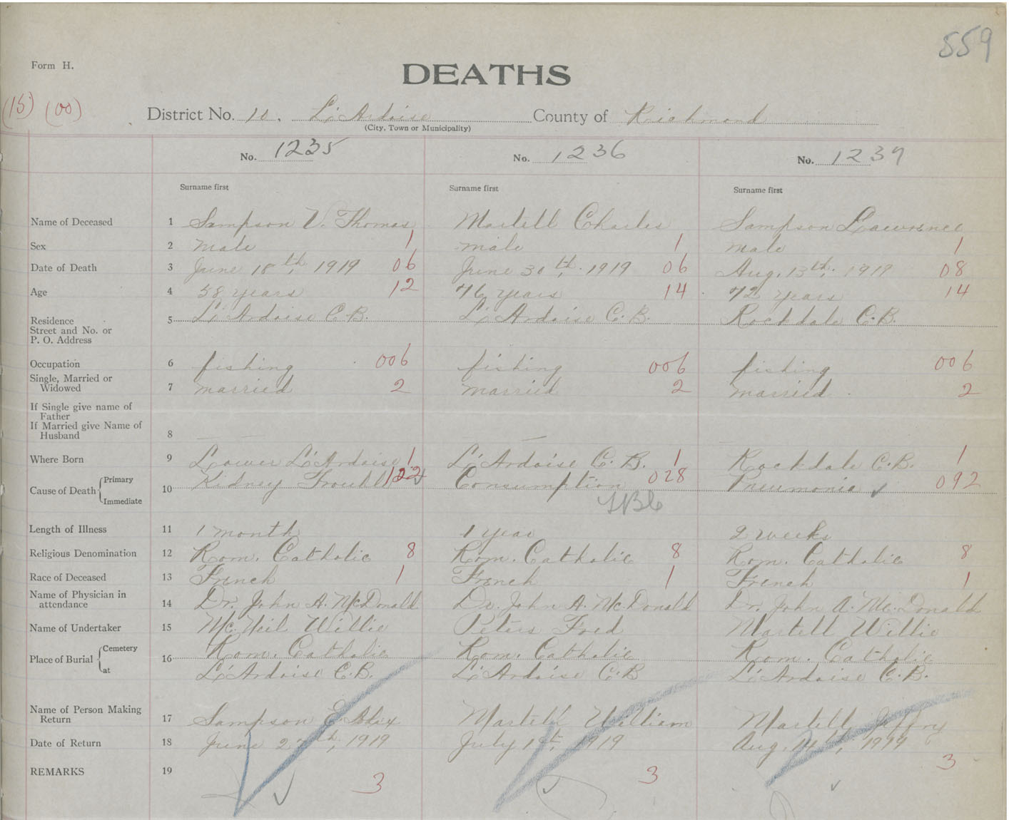 Male Death Registration: Year: 1919 book: 47 page: 559 number: 1235