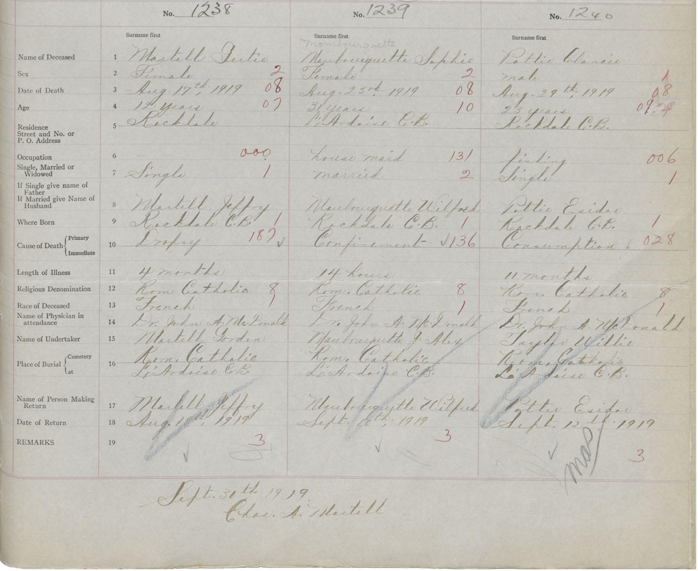 Female Death Registration: Year: 1919 book: 47 page: 559 number: 1238