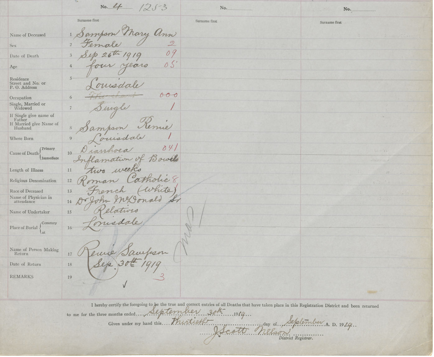 Female Death Registration: Year: 1919 book: 47 page: 567 number: 1253