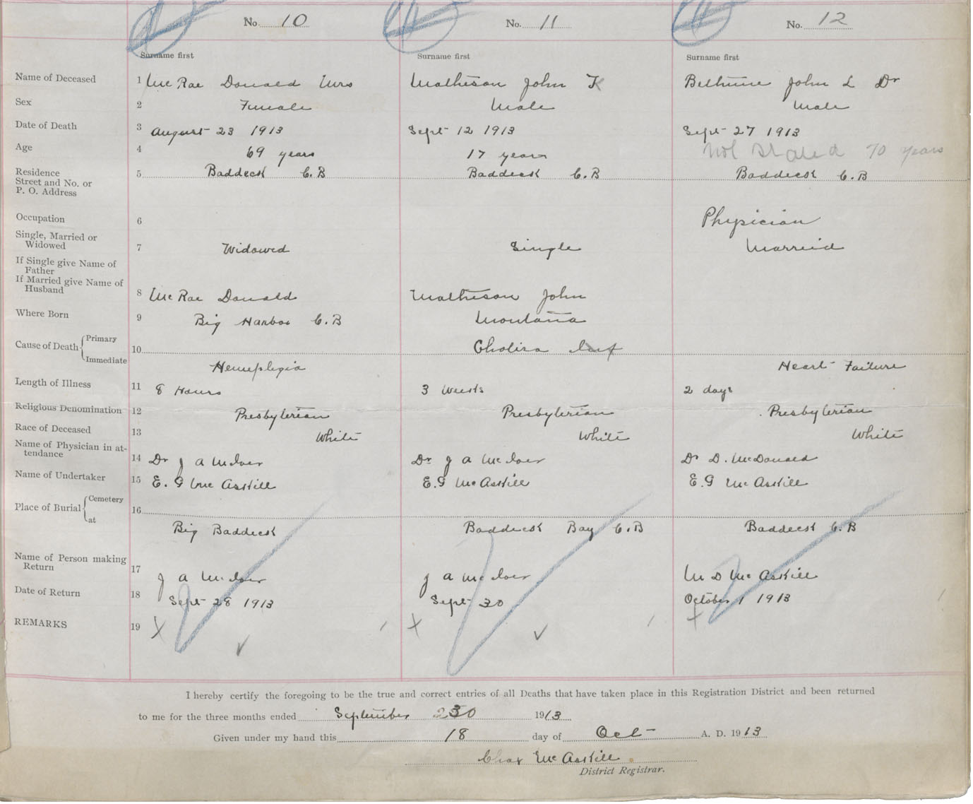 Female Death Registration: Year: 1913 book: 48 page: 5 number: 10