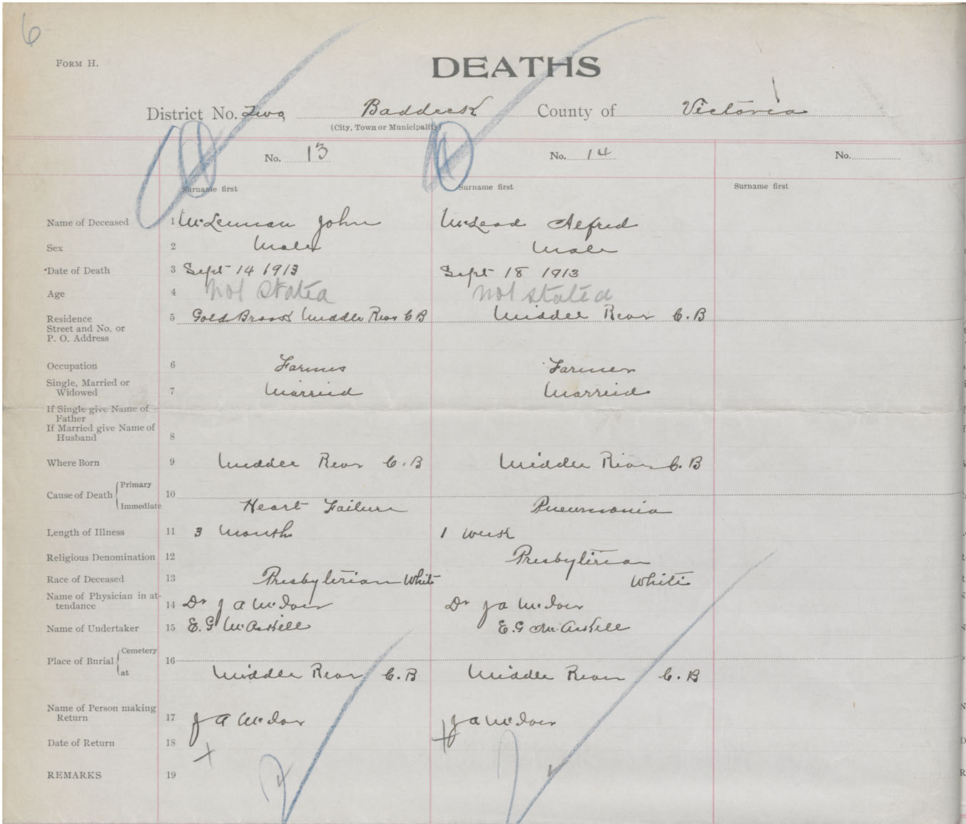 Male Death Registration: Year: 1913 book: 48 page: 6 number: 13