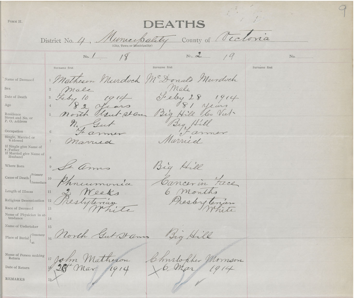 Male Death Registration: Year: 1914 book: 48 page: 9 number: 18