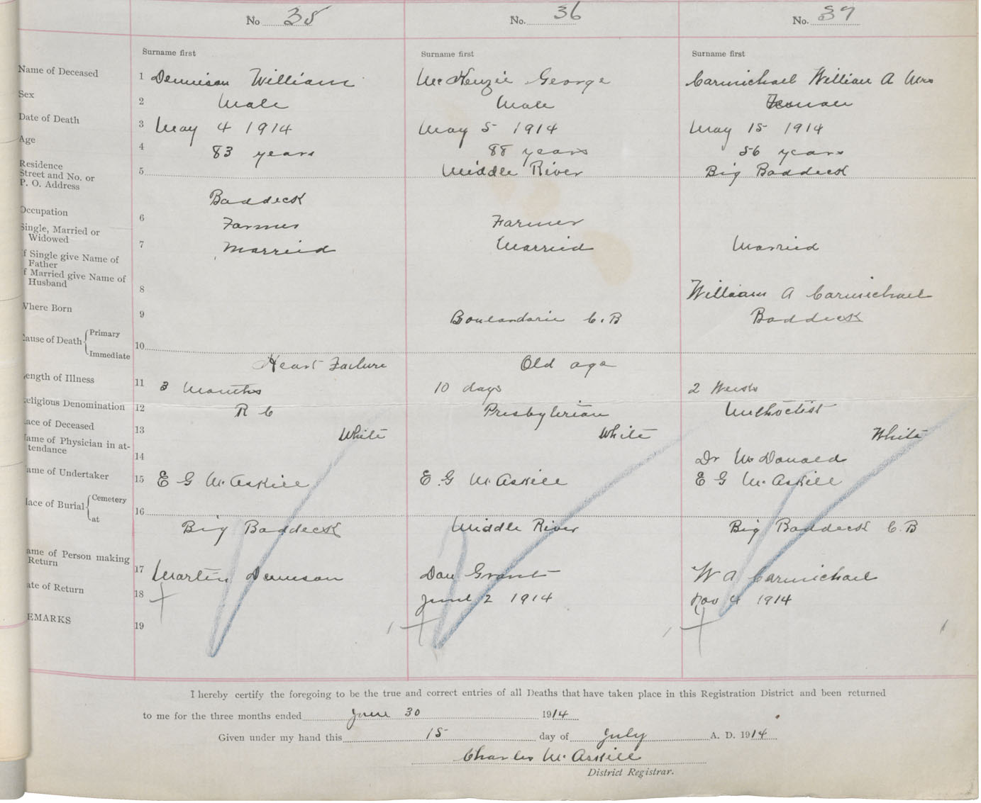 Male Death Registration: Year: 1914 book: 48 page: 19 number: 35