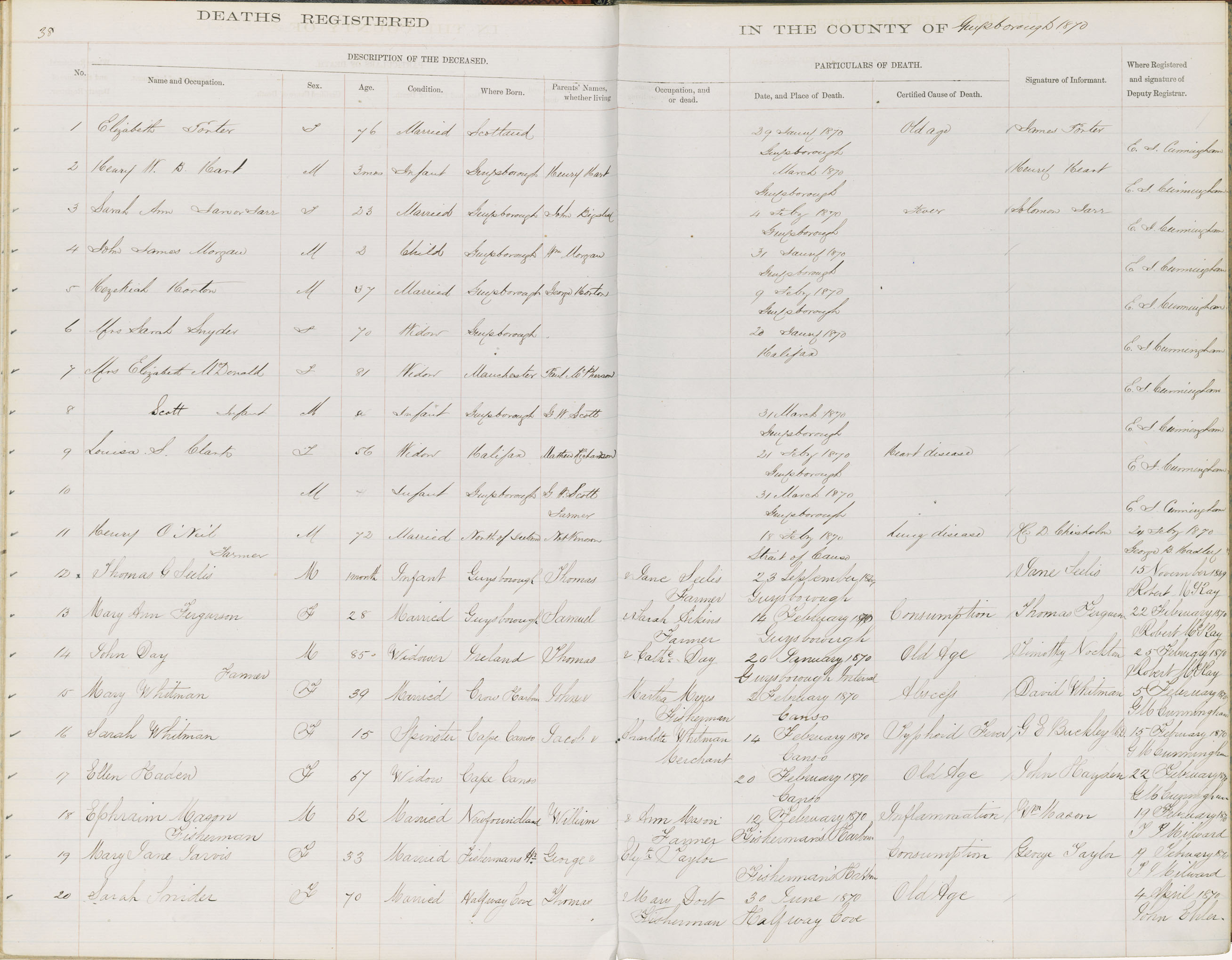 Death Registration: Year: 1870 book: 1807 page: 38 number: 20