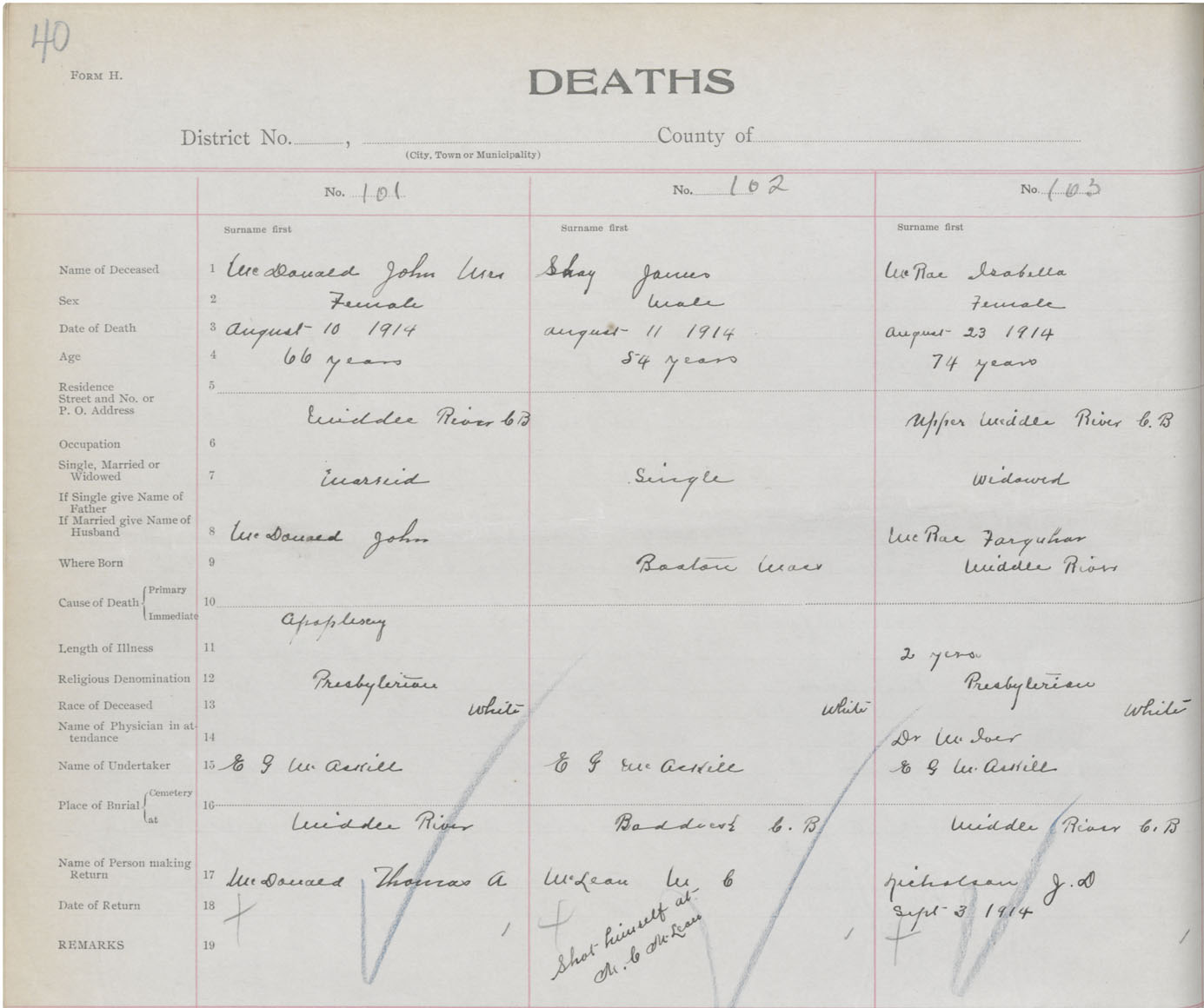 Female Death Registration: Year: 1914 book: 48 page: 40 number: 101