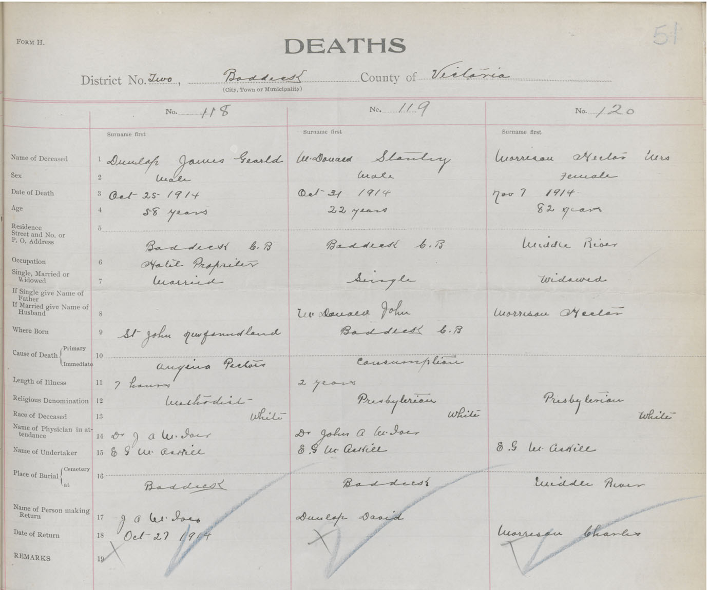 Male Death Registration: Year: 1914 book: 48 page: 51 number: 118