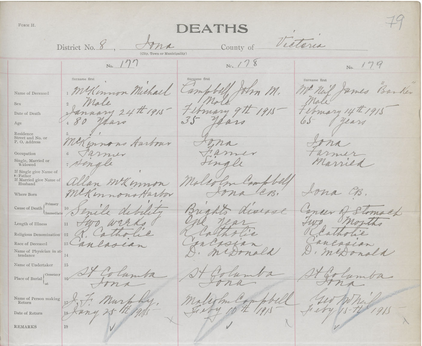 Male Death Registration: Year: 1915 book: 48 page: 79 number: 177