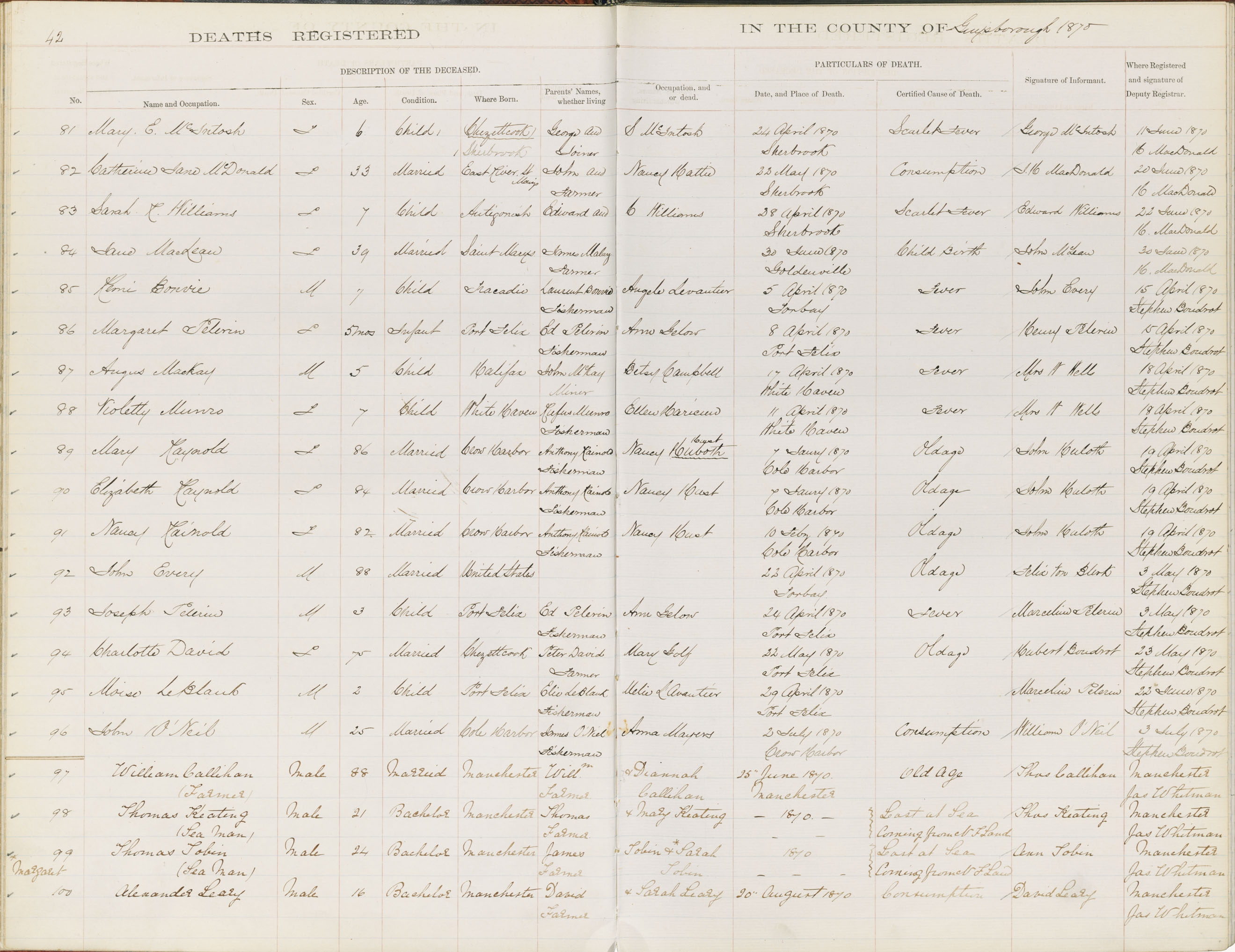 Death Registration: Year: 1870 book: 1807 page: 42 number: 81