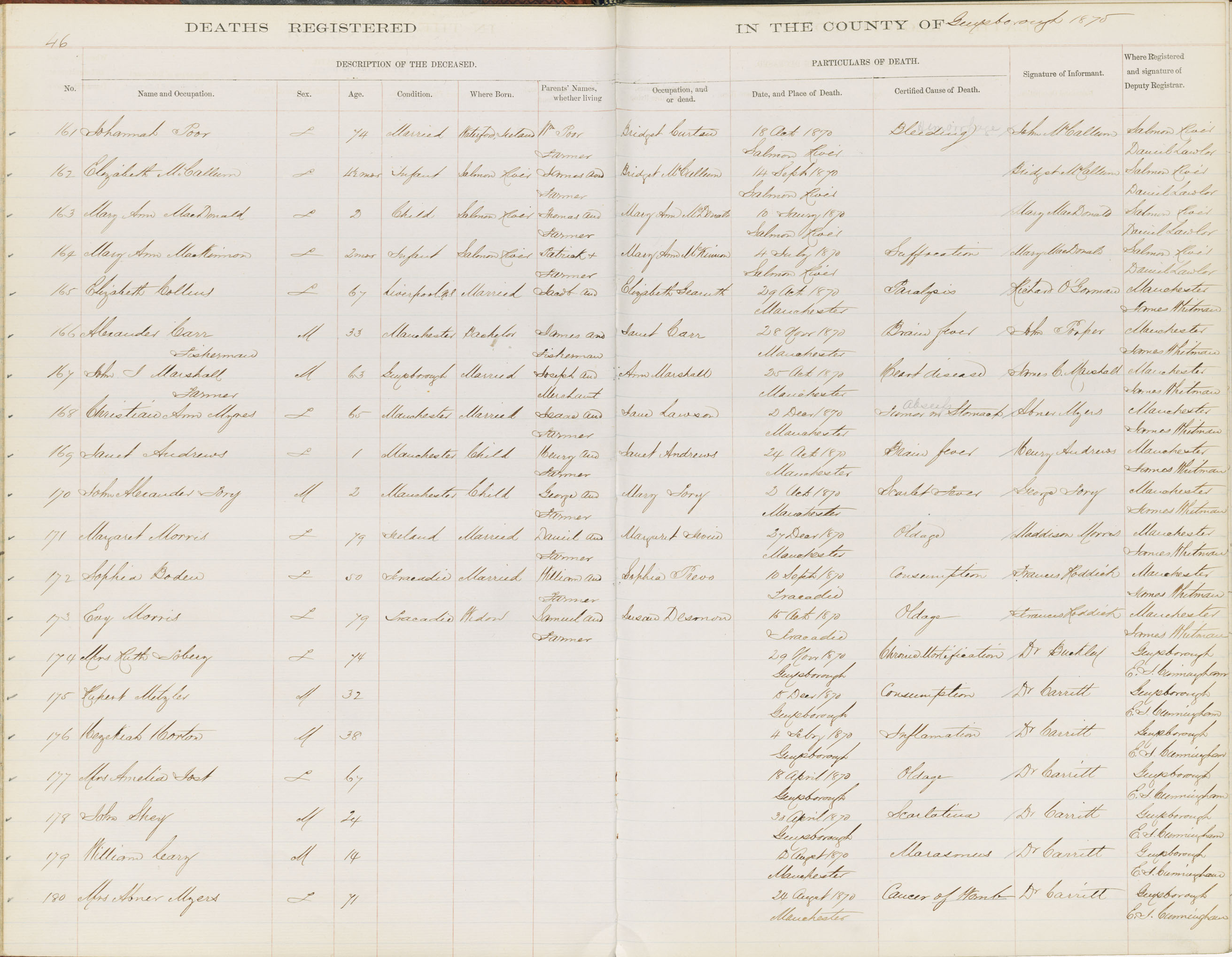 Death Registration: Year: 1870 book: 1807 page: 46 number: 163