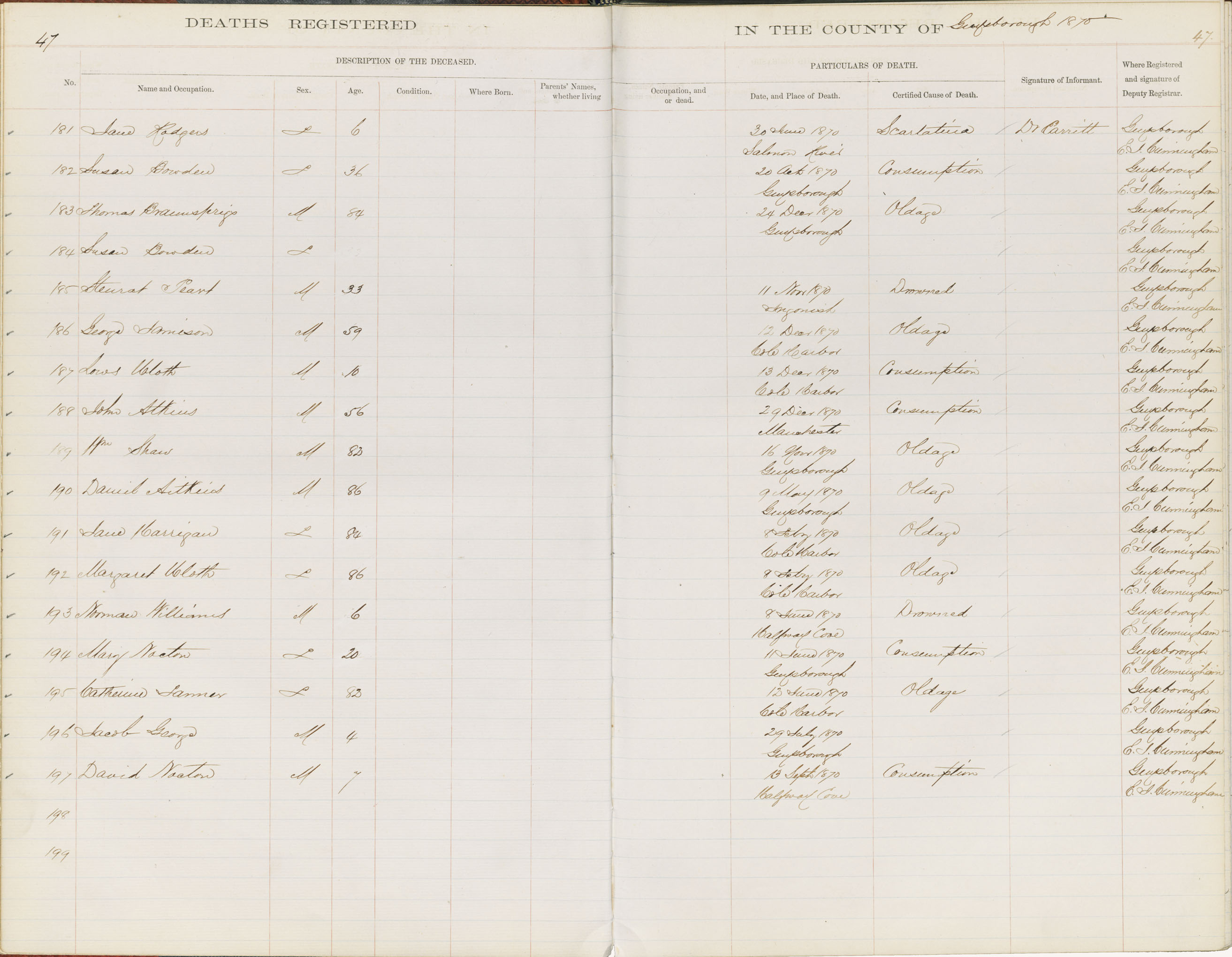 Death Registration: Year: 1870 book: 1807 page: 47 number: 181